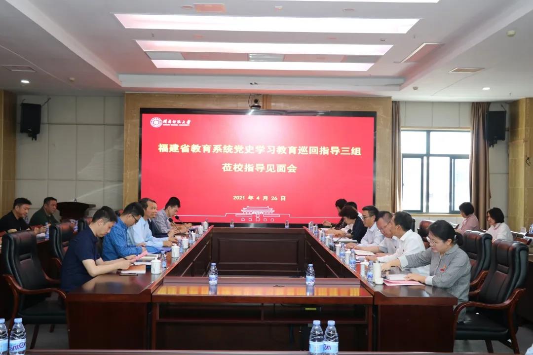4月26日上午,省教育系统党史学习教育巡回指导三组在厦门大学党委原副书记赖虹凯的带领下莅校指导党史学习教育。巡回指导见面会在科技楼会议室举行。校党委书记、党史学习教育领导小组组长吴彬镪,校党委副书记、党史学习教育领导小组副组长肖庆伟,校党史学习教育领导小组及办公室成员,学校相关部门负责人、二级学院党委书记参加会议。