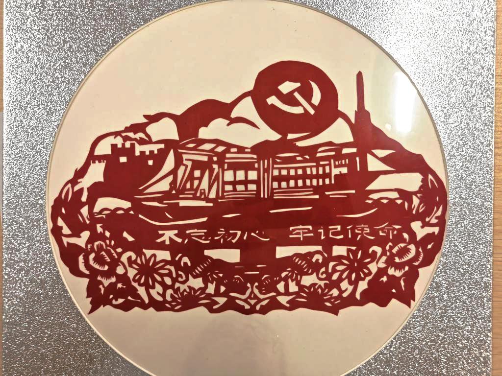参赛团队精心准备宣讲资料,为现场师生全方位介绍了剪纸作品的创作过程和设计理念。物理与信息工程学院罗鹏同学将城市群与邓小平同志画像融合展现在作品当中,讴歌改革开放的伟大成就;法学院智晓菲同学作品中的红船犹如一艘巨大的摇篮停放在南湖一隅,写满信仰、初心和使命;教育科学学院林晓茹同学的作品呼吁当代大学生们和牡丹一样,在新时代的巨浪中做一名爱党爱国爱家的“弄潮儿”。活动现场展示出的剪纸作品主题鲜明,内容丰富,各具特色,融思想性、教育性和艺术性于一体,诉说着登录入口学子对中国共产党百年华诞的深情祝福,让师生在欣赏剪纸的同时,汲取传承传统艺术、热爱家乡、热爱祖国的精神力量。