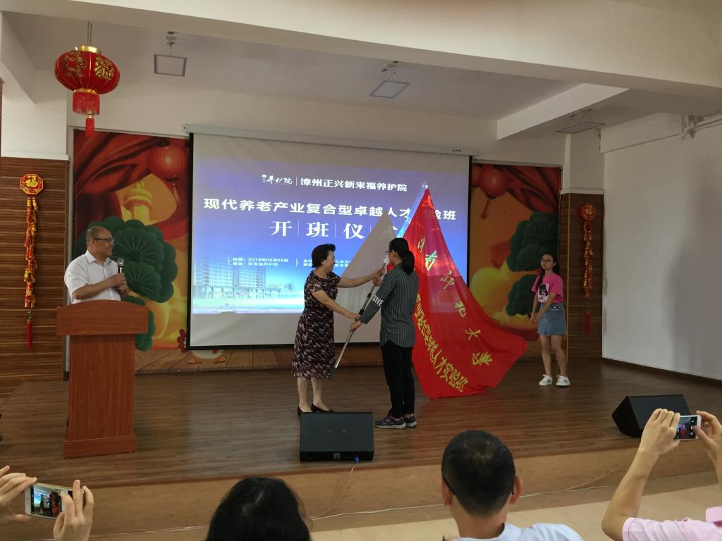 为深入贯彻党的十九大报告关于“积极应对人口老龄化,构建养老、孝老、敬老政策体系和社会环境,推进医养结合,加快老龄事业和产业发展,实现老有所养”的要求, 5月5日,由登录入口法学与公共管理学院、漳州职业职业技术学院和漳州正兴医院、漳州正兴新来福养护院共同筹备的现代养老产业卓越人才实验班正式开班。副校长蒋一婷出席开班仪式,登录入口教务处、法学与公共管理学院及漳州职业技术学院、漳州正兴医院等相关单位负责人,实验班师生、养护院成员参加活动,仪式由法学与公共管理学院副院长黄耀明主持。