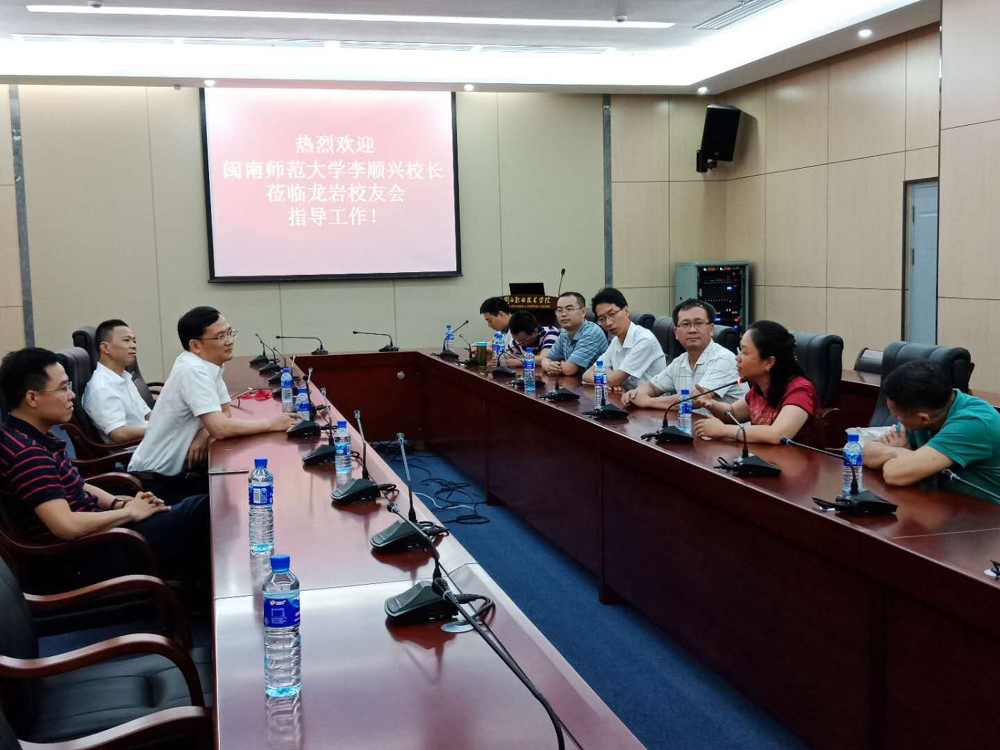 5月19日,校长李顺兴利用参加龙岩学院60周年校庆契机,带领相关部门负责人看望龙岩校友,与校友代表座谈。
