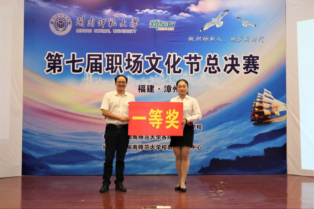 经过激烈的角逐,商学院选手卢永芳同学荣获比赛一等奖,并与建设银行漳州分行达成实习意向。新东方教育科技集团厦门学校漳州校区主管陈鼎辉对比赛进行了总结点评,对选手的表现给予充分肯定,并表示希望进一步深化校企合作。