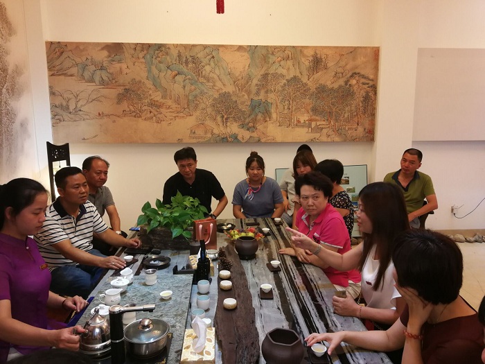 6月27日下午,副校长蒋一婷带领校地(企)合作工作办公室工作人员、商学院负责人和电子商务、市场营销等专业教授团队赴著名茶乡华安县仙都镇境内的福建哈龙峰茶叶有限公司考察调研,洽谈校企合作工作相关事宜。华安县委常委、统战部部长曾阿生陪同调研。