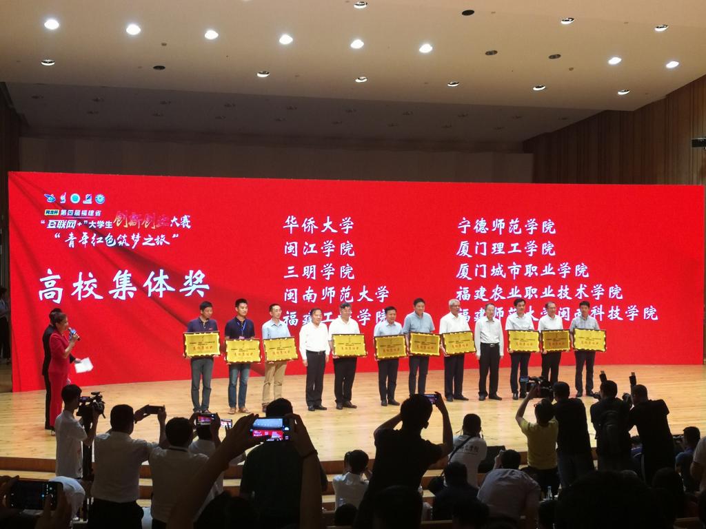 勇立时代潮头敢闯会创,扎根中国大地书写人生华章。8月27-28日,第四届福建省“互联网+”大学生创新创业大赛决赛在厦门大学举行,福建省政协副主席、省教育厅副厅长薛卫民等领导出席颁奖典礼,登录入口党委副书记钟发亮应邀参加颁奖典礼,并为获奖团队颁奖。