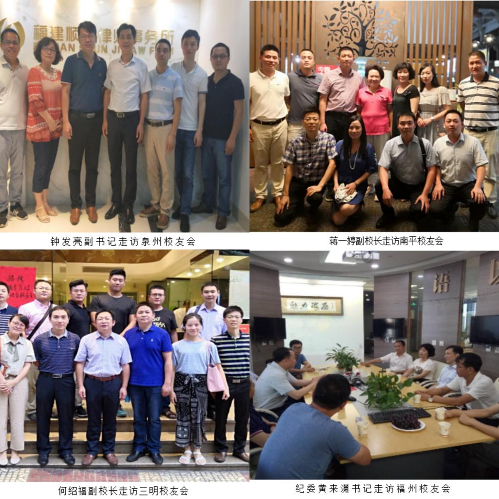6月,纪委书记黄来渊利用开会期间带领相关部门负责人走访考察了福州圣安琴舞蹈、福建海西金控有限公司等校友企业,并与福州校友代表交流座谈。7月中旬,何绍福副校长带领校友办一行走访三明校友会,与三明校友代表交流座谈。7月中旬,吴彬镪、李顺兴、钟发亮、肖庆伟、蒋一婷、黄来渊、林致远等校领导带领相关单位负责人在复旦大学培训学习期间,参观校友企业——上海木文化博物馆和艺素教育,看望走访了江浙沪校友会并召开座谈会。