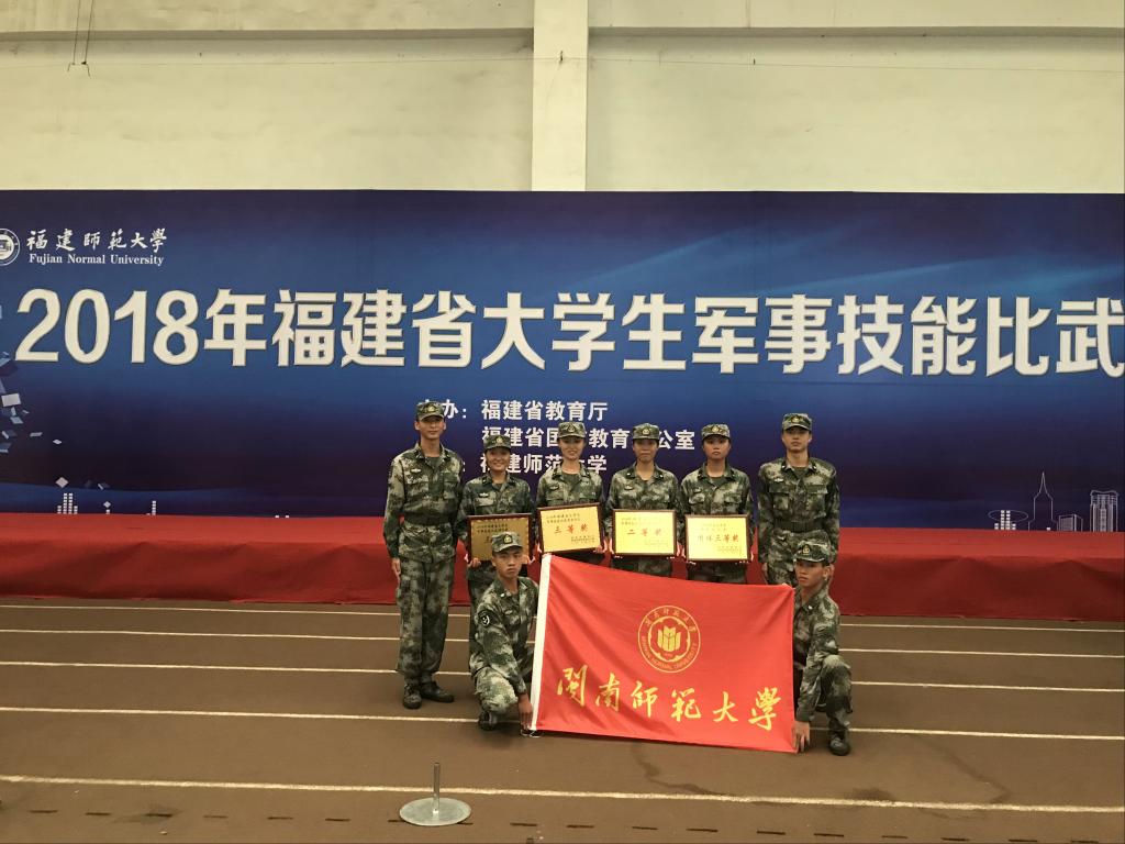 日前,由福建省教育厅、省国防教育办公室主办的2018年福建省大学生军事技能比武活动在福建师范大学举行。登录入口人民武装部组织8名学生经过十多天集训后参加了各项赛事角逐。登录入口学生在比赛中发扬团结协作、爱拼敢赢的优良作风,获得战场医疗救护项目二等奖;单兵队列、捕俘拳2个单项三等奖和团体积分三等奖的好成绩。