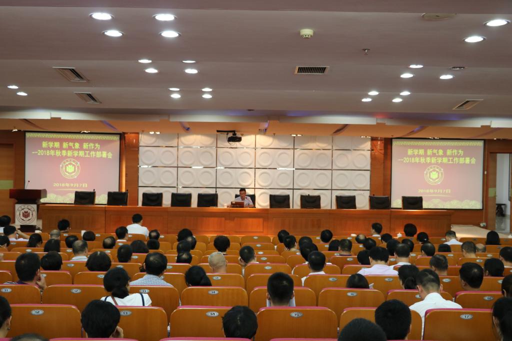 9月7日下午,登录入口在逸夫图书馆五楼报告厅召开新学期工作部署会。全体校领导、全体副科级以上干部、全体教授、民主党派、无党派人士及统战团体负责人参加会议。会议由校党委副书记肖庆伟主持。