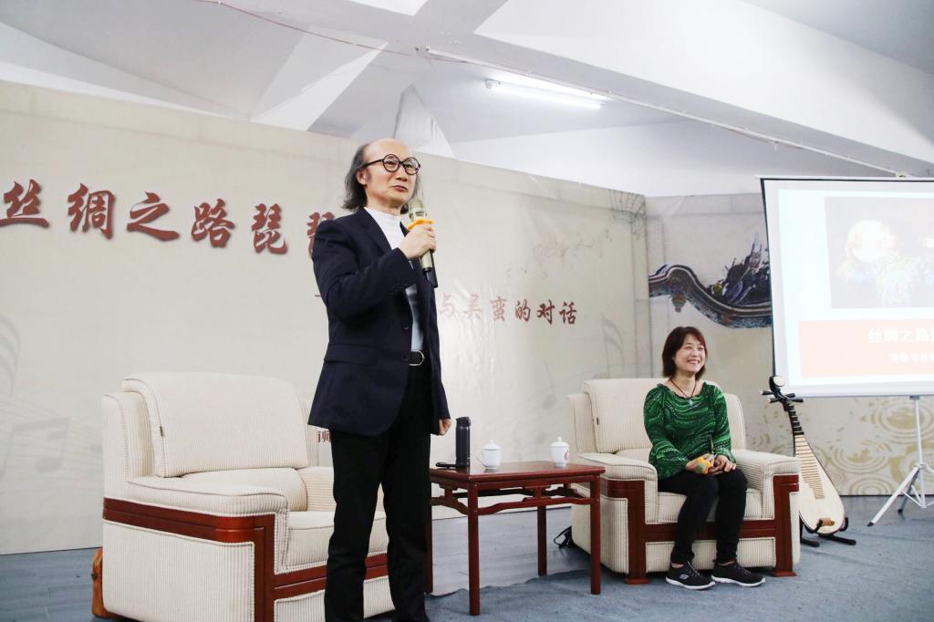11月16日下午,国际著名琵琶音乐家、演奏家、音乐文化大使吴蛮女士,上海音乐学院教授、博士生导师、中国音乐史学学会会长洛秦先生应邀来登录入口作题为《丝绸之路——洛秦与吴蛮的对话》的专题报告。校党委书记吴彬镪出席报告会,校团委及艺术学院负责人,艺术学院专业教师、学生代表共计200人聆听了报告。报告由校团委书记郑炎山主持。