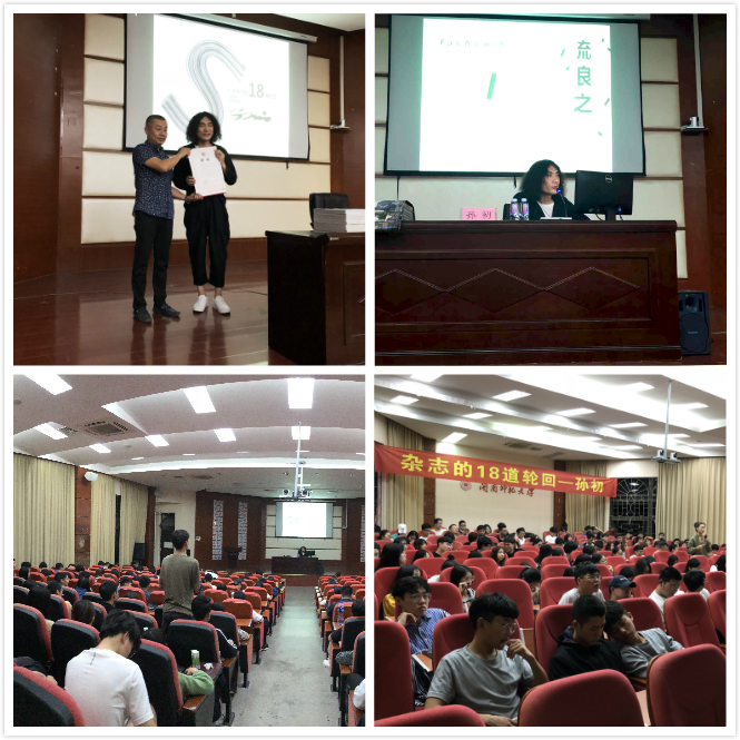 讲座中,孙初系统介绍了杂志设计及制作流程,从选题、编辑、校对、设计、打印、发行、发行、上市等方面系统全面阐释了杂志的内部的运作过程的步骤,重点阐述了“选题”的四个原则以及其背后的美学追求。互动环节,孙初就学生提出的有关人生、工作、设计等方面的问题进行了解答。