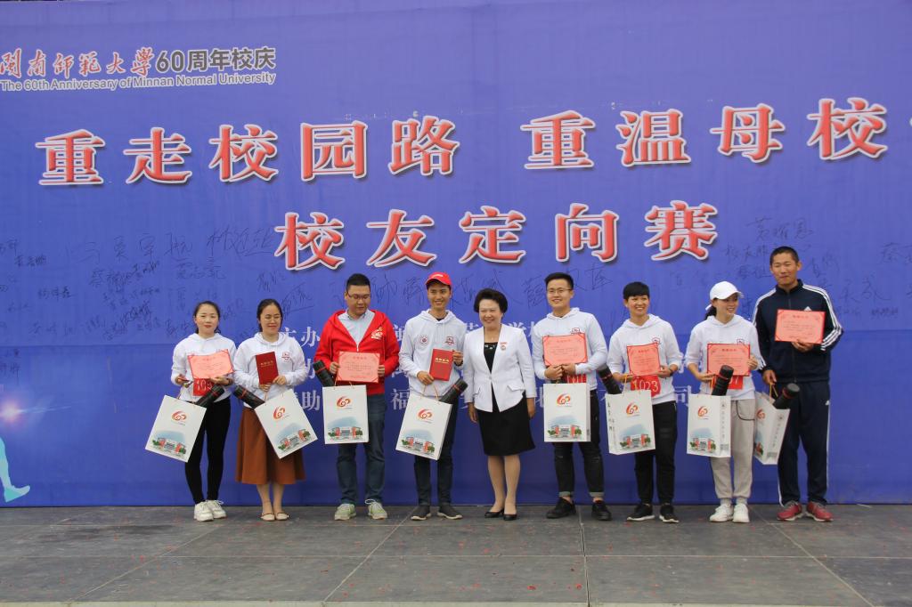 比赛设置了一等奖、二等奖、三等奖和优胜奖等奖项,来自各地市校友会、各个学院以及不同届别的校友们纷纷报名,积极参与。面对阔别多年的母校,校友们跃跃欲试,凭借旧时记忆,踏上重游之路。比赛中,校友们互相鼓励,互相竞技,秉持“友谊第一、比赛第二”的理念,各展风采,并与母校合影留念,续留温情。副校长、校友会会长蒋一婷为获奖选手颁奖。