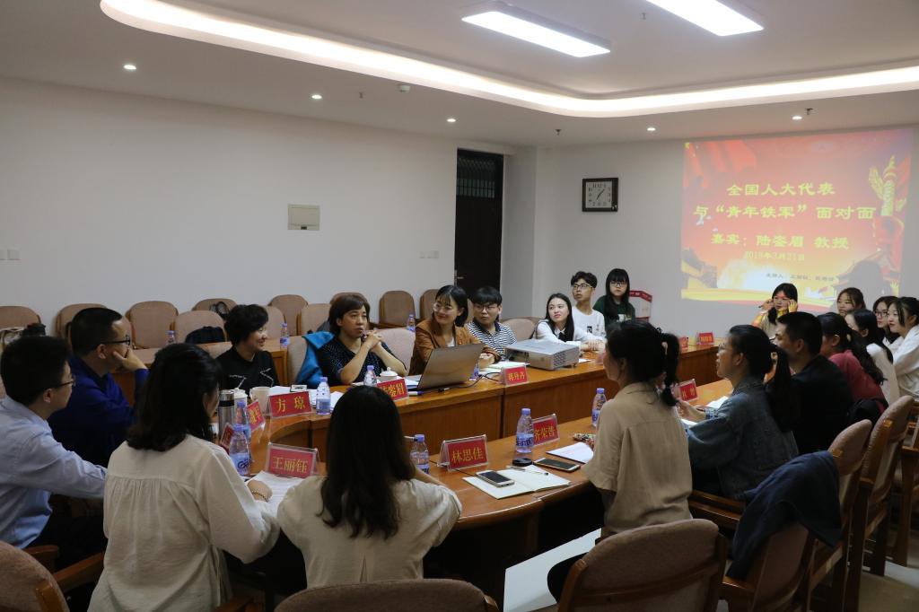 会上,陆銮眉教授围绕习近平总书记参加福建代表团审议时的重要讲话及李克强总理所作的政府工作报告,与学员分享了参加两会的体会。陆銮眉表示,聆听了习总书记在福建代表团的重要讲话,深深感受到总书记对福建的发展寄予厚望,相信福建一定会谱写出新篇章。政府工作报告通篇体现了以人民为中心的发展思想,关注民生发展,大事有突破,难事有进展,事事说到了人民的心坎上。陆教授还从《创新“妇联+”法律救济联动机制》《关于推动我国村级组织人才振兴的对策建议——以福建为例》两个提案展开,介绍了自己的履职情况,并就当前大学生就业、创新创业等方面与会学员做了分享交流。
