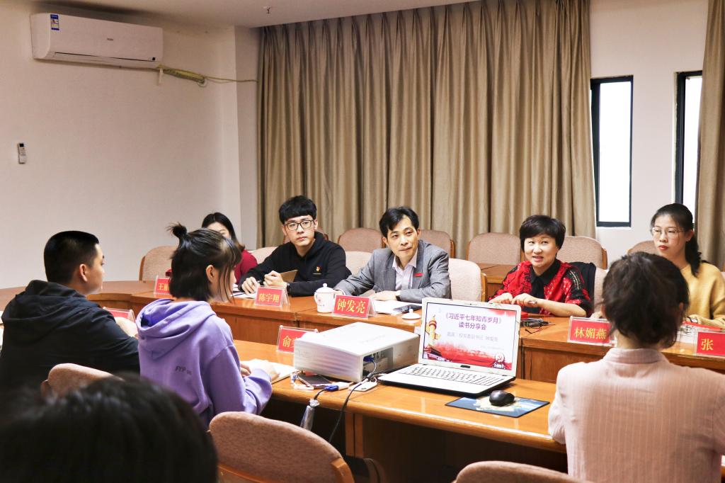 “作为新时代的青年,我们要向习总书记看齐,既做到多读书,广泛涉猎各种知识,又做到勤于思考,将理论与实践相结合。”分享会上,来自物信学院的林增,数统学院的俞弈杉分别就《习近平的七年知青岁月》《苦难辉煌》等阅读书目分享了各自的学习感悟与收获。