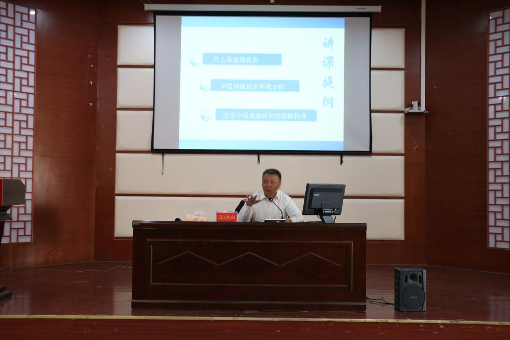 陈晓声同志作题为《一带一路与中国地缘政治环境》的专题报告