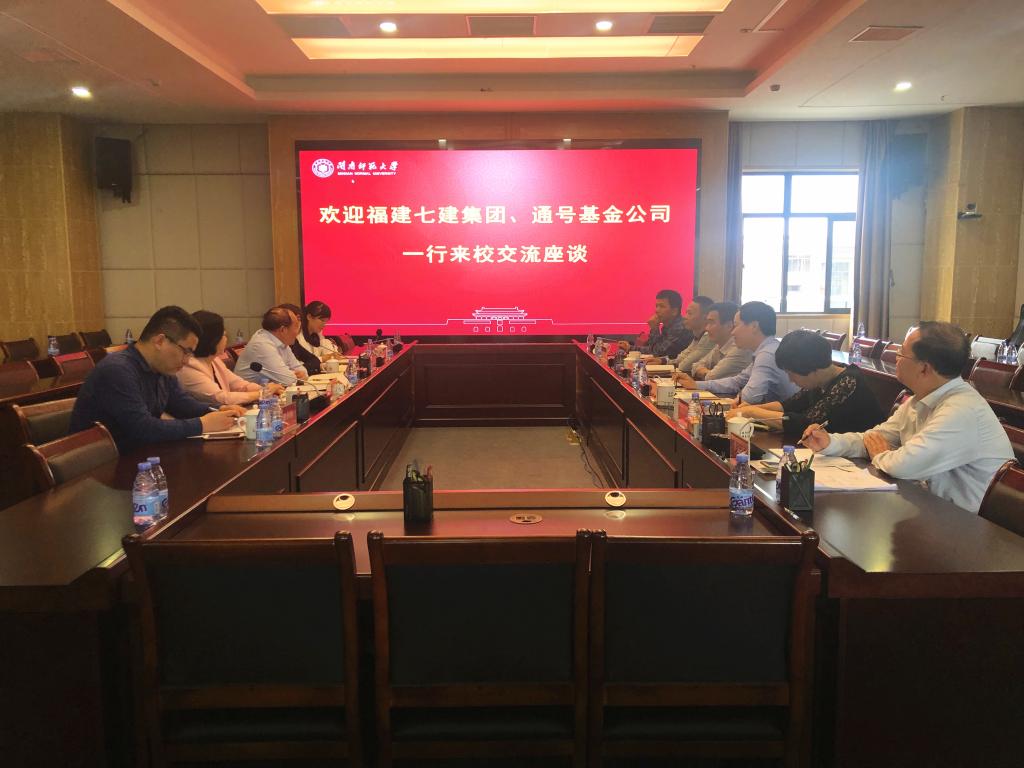 5月7日下午,福建七建集团有限公司董事长赖锦昌和通号基金公司副总裁王夏彦一行5人来登录入口考察交流。校党委书记吴彬镪、副校长林致远接待了来宾并座谈,学校办公室、财务处、国有资产管理处和基建处等部门负责人陪同座谈。
