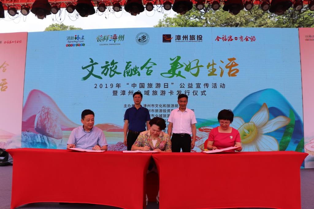 5月19日上午,2019年“中国旅游日”公益宣传活动暨漳州全域旅游卡发行仪式在漳州古城北广场举办。登录入口党委书记吴彬镪,漳州市副市长兰万安,登录入口党委常委、副校长蒋一婷出席活动。漳州市文化和旅游局、市文明办、漳州旅游和投资集团,登录入口校地办、商学院等相关单位负责人和企业代表参加活动。