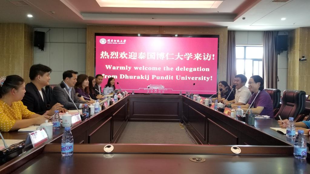 5月27日上午,泰国博仁大学副校长Pattanant Petchchedchoo一行来登录入口交流访问。校党委常委、副校长林致远在科技楼1607会议室会见了来宾,海外教育学院负责人及相关人员参加座谈会。