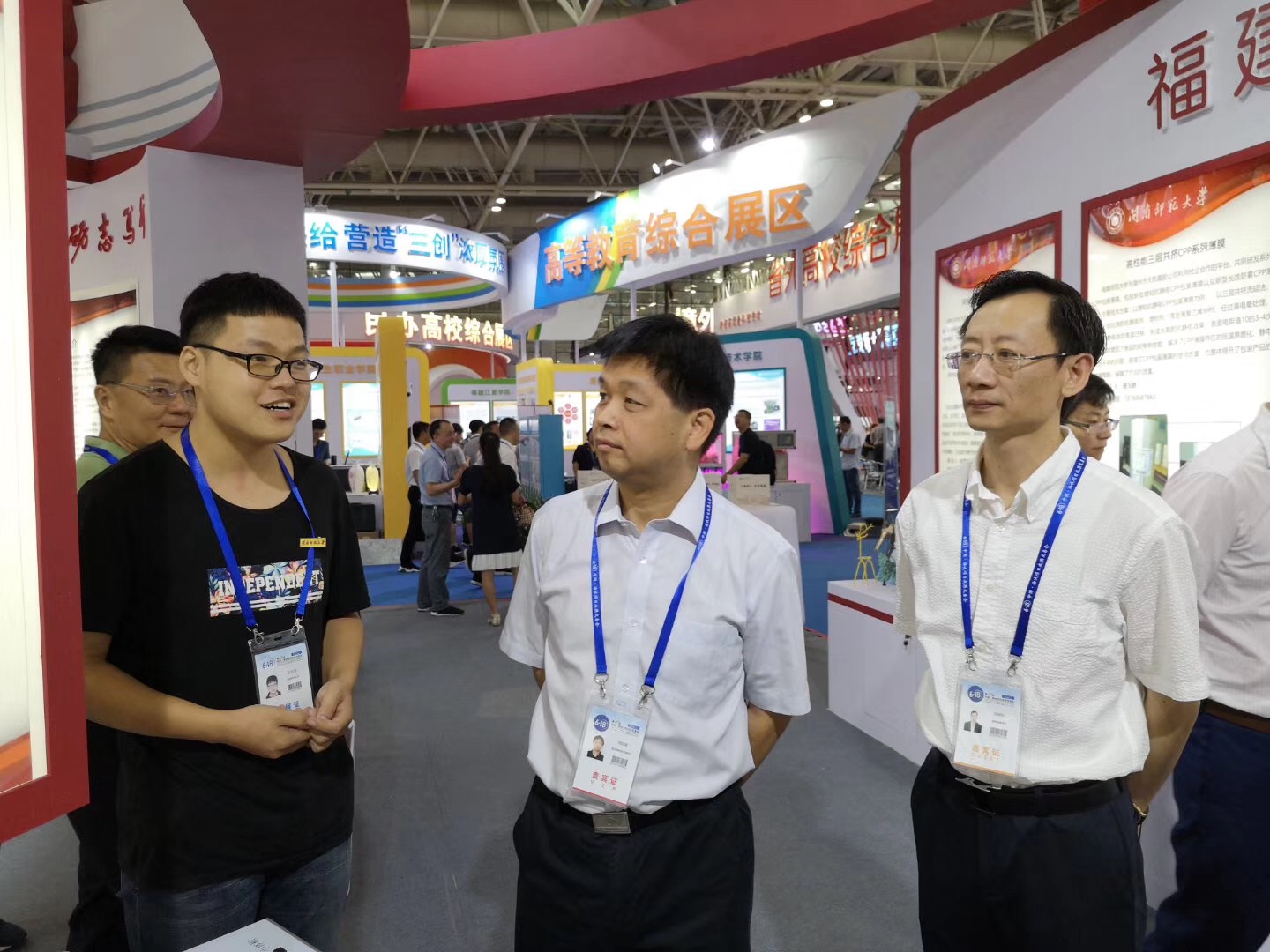 交易会期间,教育部科技发展中心副主任刘红斌、福建省教育厅厅长林和平等到登录入口展区参观指导。