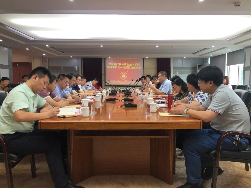 7月4日上午,厦门软件职业技术学院校长郑通涛、副校长王杰华一行到登录入口访问交流。校长李顺兴会见了郑通涛一行,党委常委、副校长林致远、张龙海在逸夫楼三楼会议中心接待来宾并进行座谈交流。