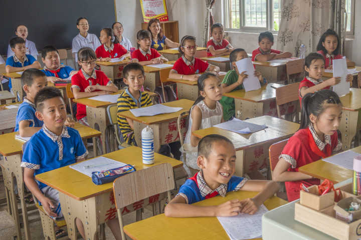 7月6日,实践团正式启航。文学院党委副书记谢斌斌、院长助理杨杏红等五位老师带领实践团八名学生队员前往镇海村。活动开班仪式在镇海小学举行,指导老师许新华主持仪式,27位3-12岁的少年儿童及部分村民参与,镇海小学蓝全裕校长介绍了本地区和学校的概况,文学院党委副书记谢斌斌期望本次活动起到良好的社会效应,杨杏红、高显莹老师表示希望能与镇海小学开展持续对接,共同保护镇海文化,实践团与孩子们约定活动期间的课堂纪律。随后国家级普通话测试员涂敏华副教授为孩子们讲授第一堂课《学习经典,做“三好学生”》,涂老师用亲切生动的语言教导孩子们要懂得“知恩报恩,孝敬父母,友爱兄弟”,引起孩子们的强烈共鸣。