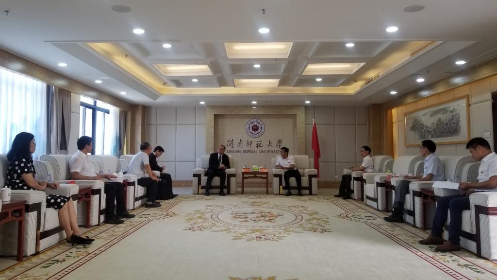 9月12日,日本岛根大学服部泰直校长一行来登录入口访问交流,交流座谈会在科技楼举行。校党委书记吴彬镪,党委常委、副校长林致远出席座谈会,海外教育学院、数学与统计学院、商学院、化学化工与环境学院等单位负责人及相关人员参加座谈会。