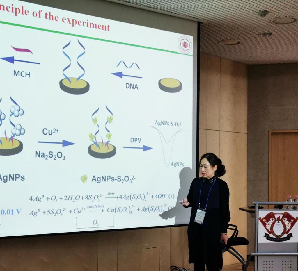 会上,高凤副教授作了题为《Ultrasensitive Electrochemical Determination of Trace Cu2+Based on Catalytic Leaching of Oligonucleotide-stabilized Silver Nanoparticles》的报告,并就报告内容与参会代表进行讨论交流。