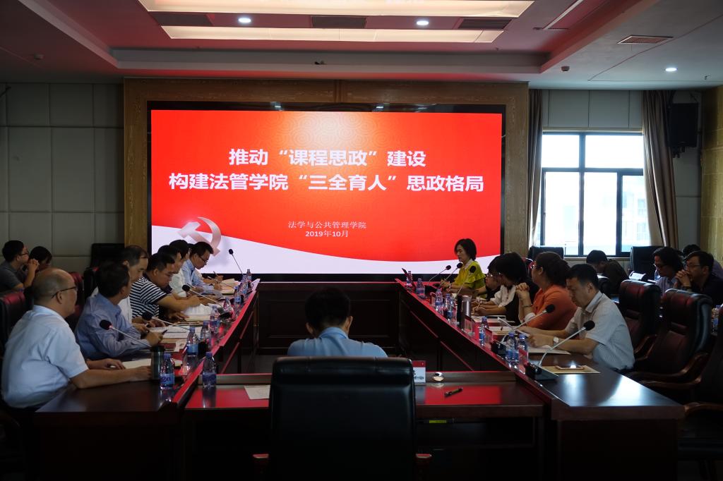 为进一步推进“不忘初心、牢记使命”主题教育与高校立徳树人根本任务相结合,构建“三全育人”工作格局,10月21日,法学与公共管理学院在科技楼举行“课程思政”研讨会。校党委副书记钟发亮出席会议,学校相关部处、法学与公共管理学院全体教职工参加会议。会议由法学与公共管理学院副院长黄耀明主持。