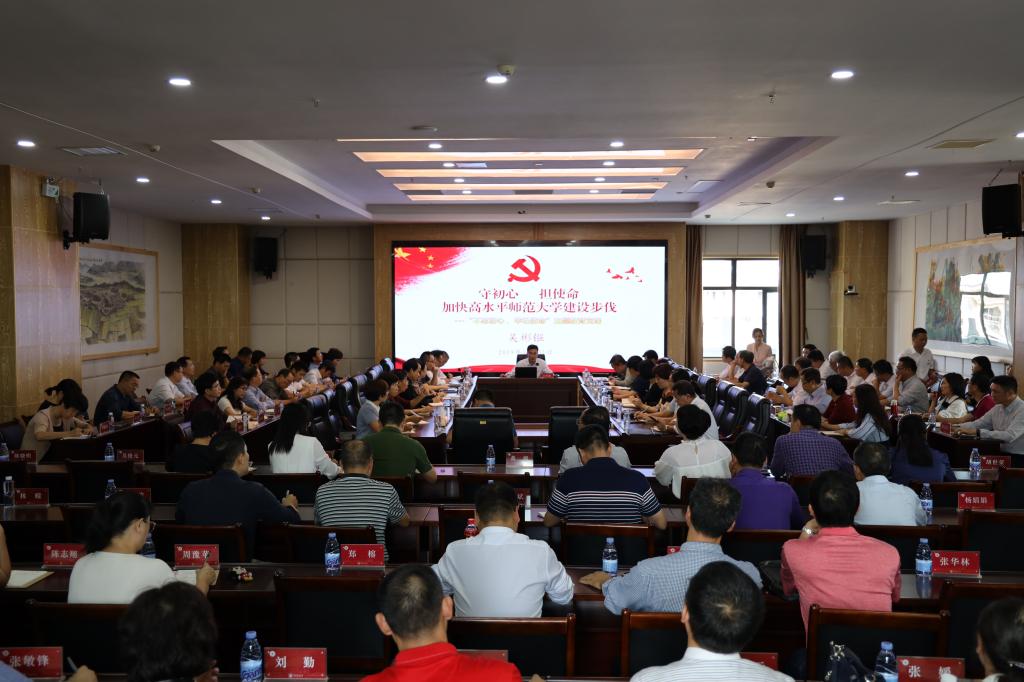 吴彬镪以《守初心 担使命 加快高水平师范大学建设步伐》为主题,围绕“在提高站位中坚定建设高水平师范大学的决心”“在检视困难问题中找准建设高水平师范大学的着力点”“在狠抓整改落实中加快高水平师范大学建设步伐”三个方面与大家分享了个人学习体会和工作思考。他指出,全校党员领导干部要对照初心和使命要求,在系统深入学习习近平新时代中国特色社会主义思想中树牢坚不可摧的“信仰之心”、在全面系统把握新时代高等教育地位作用中树牢教育报国的“使命之心”、在积极投身加快建设高水平师范大学的实践中树牢奋发向上的“担当之心”。