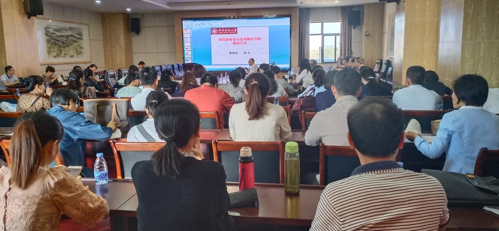 11月5日下午,登录入口在科技信息楼举行师范类专业认证辅导培训。马克思主义学院、外国语学院、数学与统计学院、物理与信息工程学院、化学化工与环境学院、教育科学学院、体育学院等学院承担公共课教学的教师和师范专业任课教师以及教务处相关科室人员参加培训。
