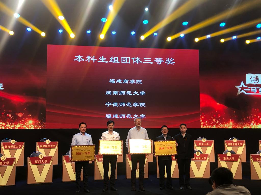 11月11日,由省委教育工委主办、省高校思想政治理论课教学指导委员会、福建教育电视台承办的第四季福建省高校大学生学习马克思主义理论“一‘马’当先”知识竞赛总决赛在福州落下帷幕。省委常委周联清出席大赛并为获奖者颁奖。登录入口本科生团队以总分第五名的成绩获本科组团体三等奖。