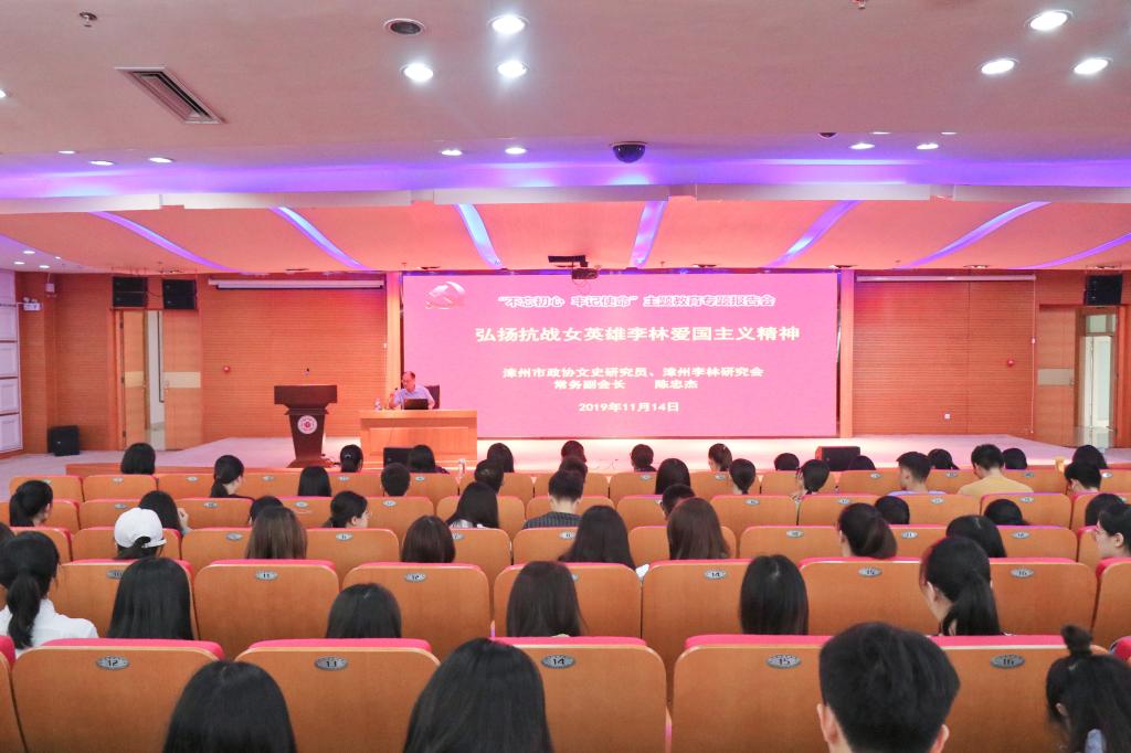 11月14日下午,漳州市政协文史研究员、李林研究会常务副会长陈忠杰应邀来校作题为《不忘初心,牢记使命——弘扬李林爱国主义精神》的专题报告。漳州市华侨历史协会李林研究会秘书长、李林外甥周文盛,历史地理学院师生代表及党校第42期发展对象培训班全体学员参加报告会。报告会由历史地理学院党委书记吴仰周主持。