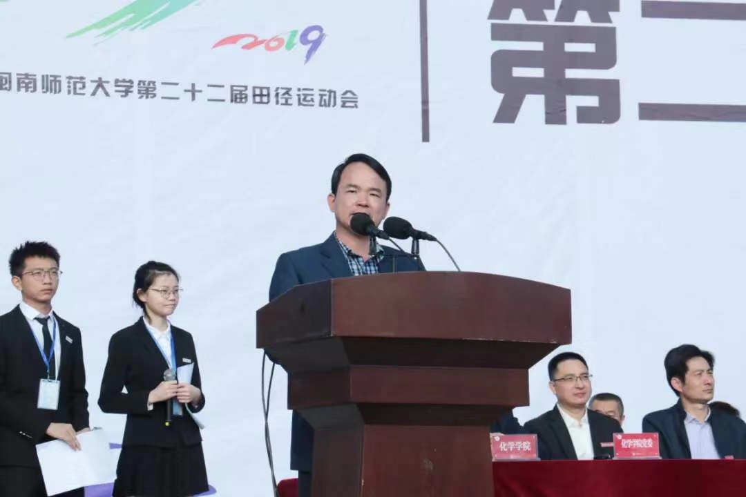 校党委书记吴彬镪在开幕式上致辞。吴彬镪指出,本届运动会的召开,既是对学校体育工作成果的一次检验,更是新时代闽南师大人精神风貌的全面展示。他希望师生们在运动场上诠释知难而进的拼搏精神、凝聚齐心协力的团队力量、彰显奋勇争先的精神风貌,将本届运动会办成登录入口贯彻落实全国教育大会精神、推动学校体育事业新发展、掀起师生体育锻炼新热潮的一次盛会。他激励师生们发扬“更快、更高、更强”和“团结、友谊、进步”的体育精神,在运动会中领略体育魅力、享受运动快乐、汇集育才力量、凝聚奋斗精神,为加快建设高水平师范大学注入新动力、增添新活力。