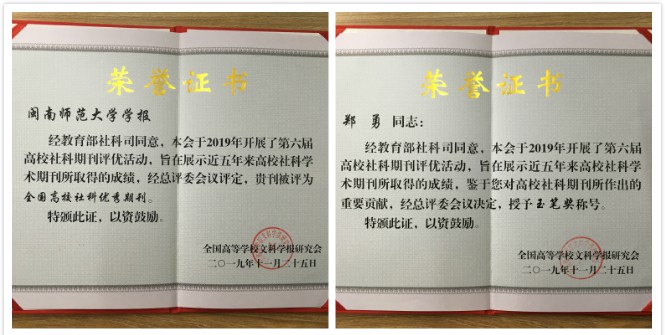 近日,全国高等学校文科学报研究会开展第六届全国高校社科期刊评优活动,《MK体育/mksport体育·官方网站学报(哲学社会科学版)》获“全国高校社科优秀期刊”荣誉称号,登录入口学报编辑部主任、哲社版主编郑勇教授荣获“玉笔奖”。