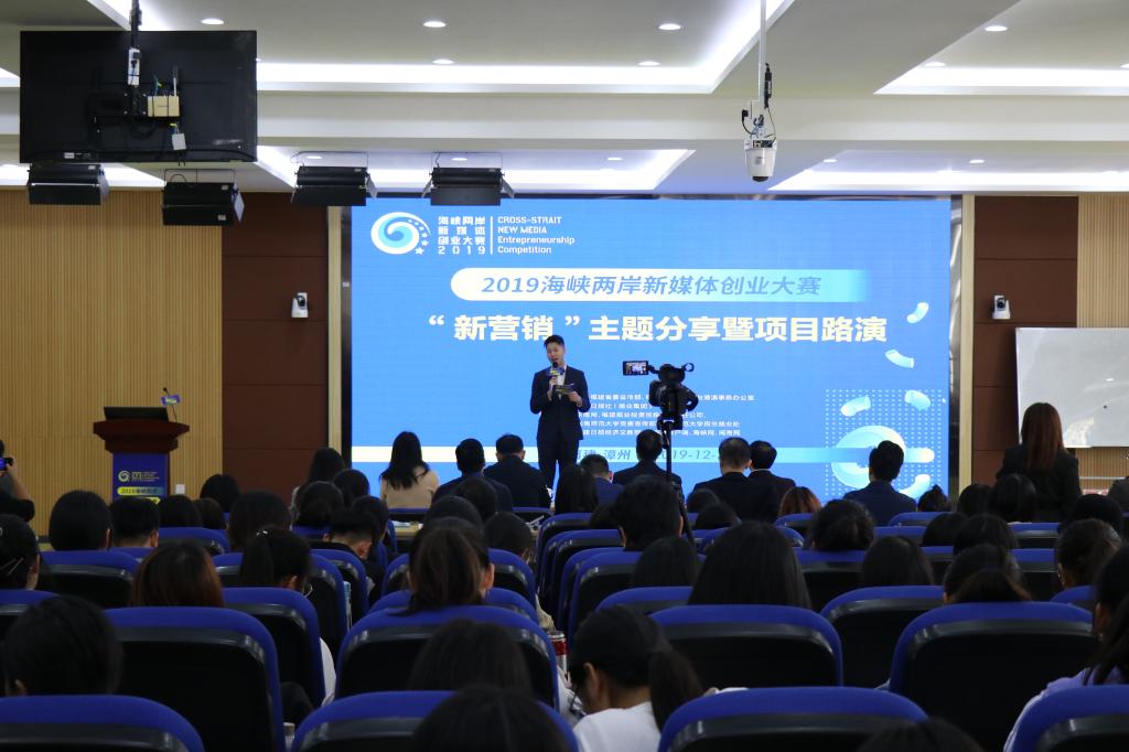 12月12日下午,海峡两岸新媒体创业大赛“新营销”主题赛在登录入口砺志楼举行。校党委宣传部部长徐志怀、东南网副总经理陈成铎分别在开幕式上致辞。来自海峡两岸的新媒体创业青年为现场师生带来一场精彩的新媒体创业成果展示。经过层层选拔,入围路演的10个项目最终决出《二次元营销策划》《小芒同学电音派对》《三蝌优》《故宫联名文创面膜》4个优秀项目进入总决赛。