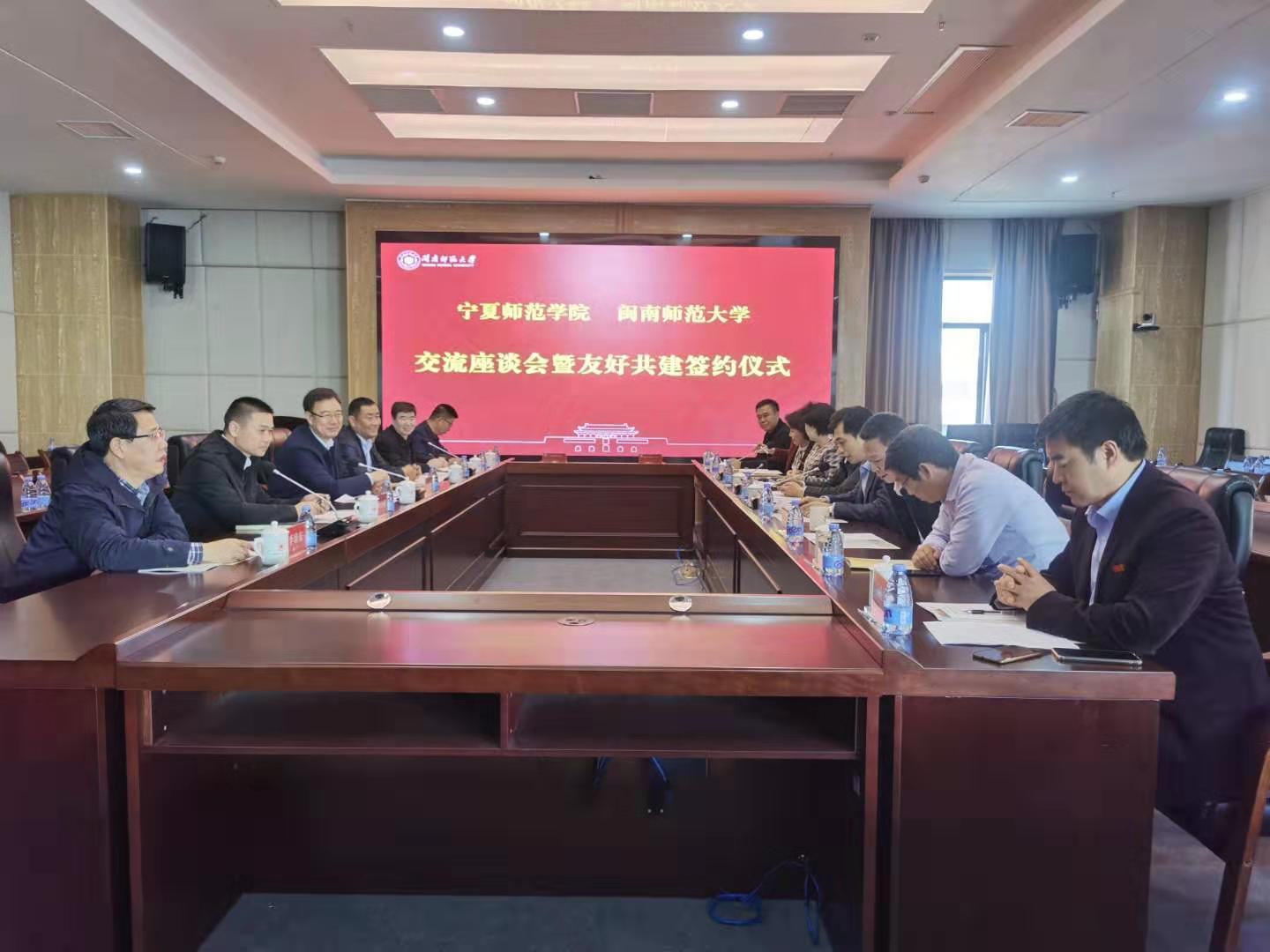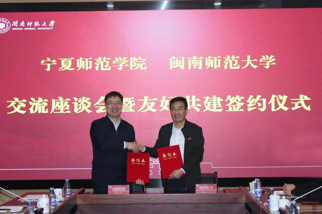 会上,吴彬镪向来宾介绍了学校基本情况和“不忘初心 牢记使命”主题教育开展情况。他表示,两校同为师范院校,办学理念相近,在全国高校开展“不忘初心、牢记使命”主题教育背景下,两校开展友好合作,是践行教育初心和使命的重要实践。希望两校以此次签约为开端,加强交流与合作,为两校创造新的发展机遇。李静介绍了宁夏师范学院的历史沿革和发展现状。他表示,闽宁合作由来已久,希望双方以此次合作为新起点,充分发挥各自优势,开展深度合作,将合作之手握紧、握实,促进双方各项事业共同进步。