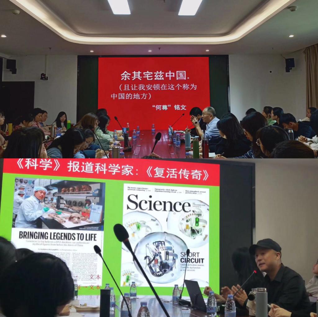 当天,姚大力、李辉教授分别为历史地理学院师生作了题为《中国:形成与发展的时空节奏》《从基因看中华民族的起源》的专题讲座。姚大力教授介绍了“中国”的几层含义及演化过程,他通过展示各朝代的疆域地图,讲述各朝代“中国”的具体含义,并引申到中国史与汉族史的关系,解释了“华夏”与“中国”的区别。李辉提出要学会从基因看物种关系的远近,从化石查找关联证据,从考古寻找文化迁移路线,并指出开展历史研究需要融合文化、生物基因、语言、社会心理等不同学科背景和知识。