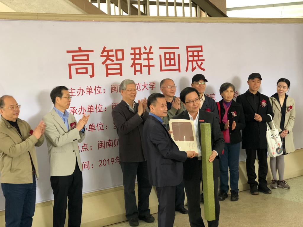 15日,复旦大学中华古籍保护研究院教授、海上画派著名花鸟画家高智群在艺术学院举办个人画展。画展共展出高智群教授近年来的花鸟画作品80余幅,题材多样、内容丰富。校党委常委、副校长林致远以及漳州市文联和漳州市美协的艺术界同仁、艺术学院领导及师生200余人参加开幕式。开幕式结束后,与会领导来宾观看了画展。
