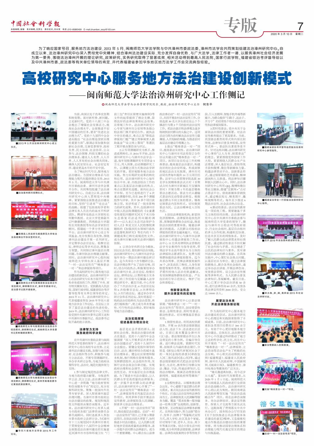 《中国社会科学报》整版报道登录入口法治漳州研究中心服务地方法治建设创新模式