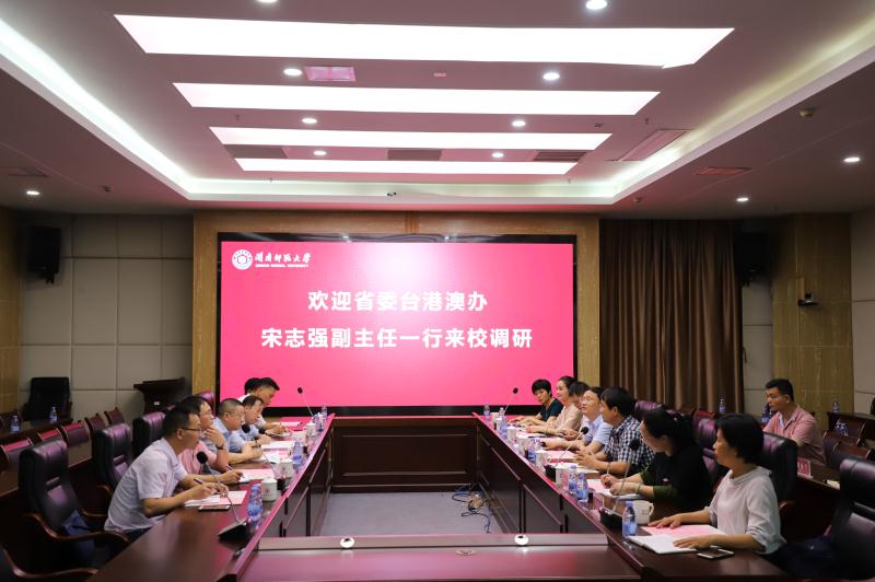 7月14日下午,中共福建省委台港澳工作办公室副主任宋志强一行7人来登录入口考察指导。交流座谈会在科技楼举行,校党委副书记、校长李顺兴,校党委常委、副校长张龙海出席座谈会,中共漳州市委台港澳工作办公室,登录入口闽南文化研究院、两岸一家亲研究院相关负责人参加座谈会。座谈会由张龙海主持。