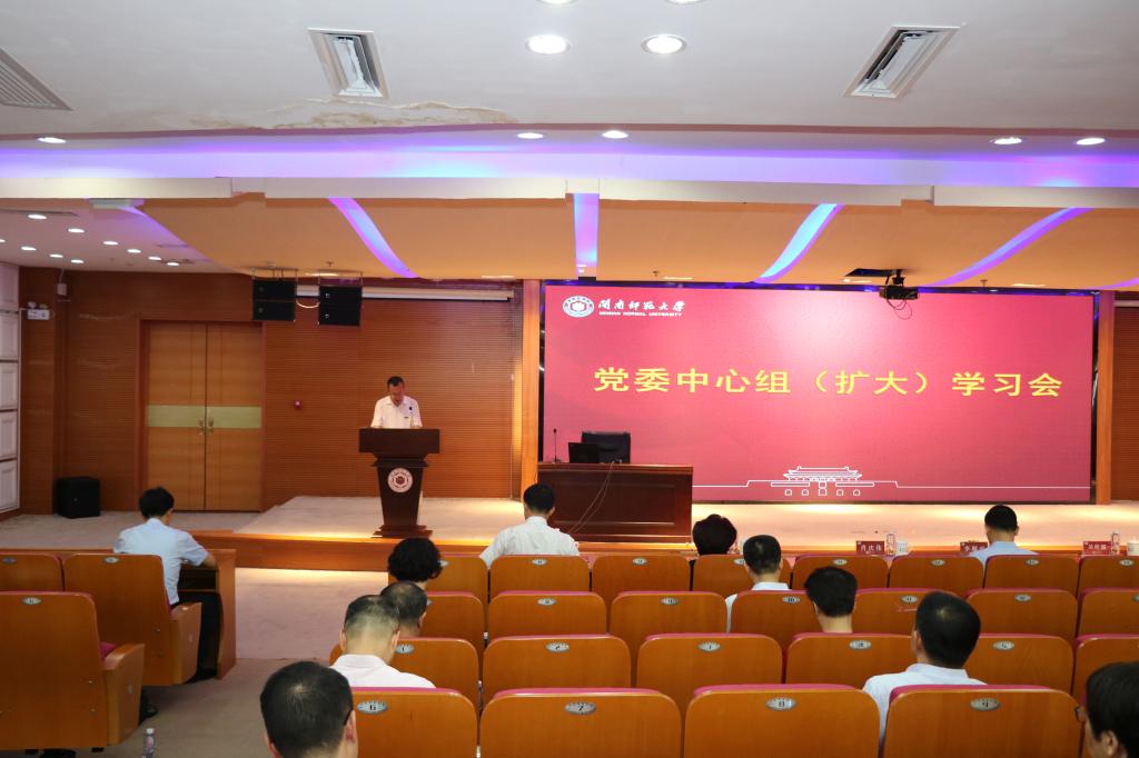 8月25日上午,校党委在逸夫图书馆五楼报告厅召开理论学习中心组(扩大)学习会,全体校领导、全校中层以上干部参加学习会。会议由校党委副书记钟发亮主持。