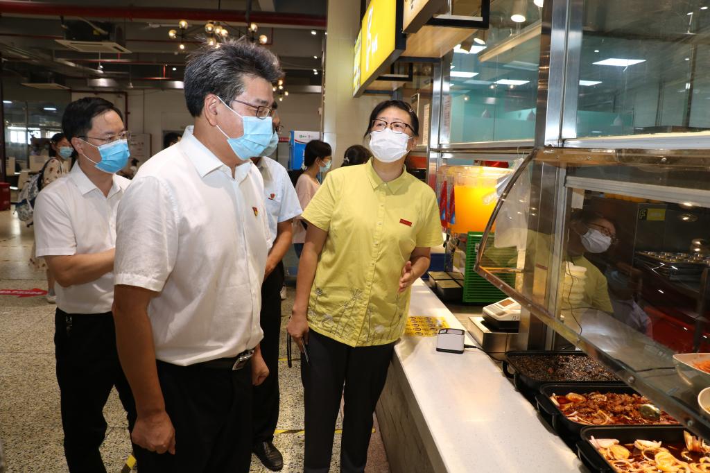 检查组实地考察了校门身份核验区、临时医疗观察点、学生食堂、宿舍、防控物资储备点等重点防控区域,详细了解学校常态化疫情防控措施,房屋安全、消防安全、实验室安全、学生心理健康教育、安全教育、扫黑除恶等各项工作。