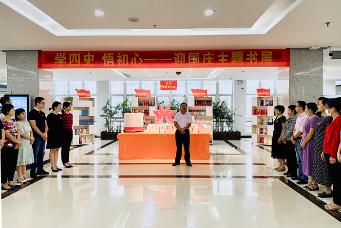 9月30日,登录入口“学四史,悟初心——迎国庆主题书展”在逸夫图书馆二楼大厅开幕。校党委常委、副校长何绍福出席开幕式并致辞,图书馆党支部、学生处党支部的党员同志参加开幕式。