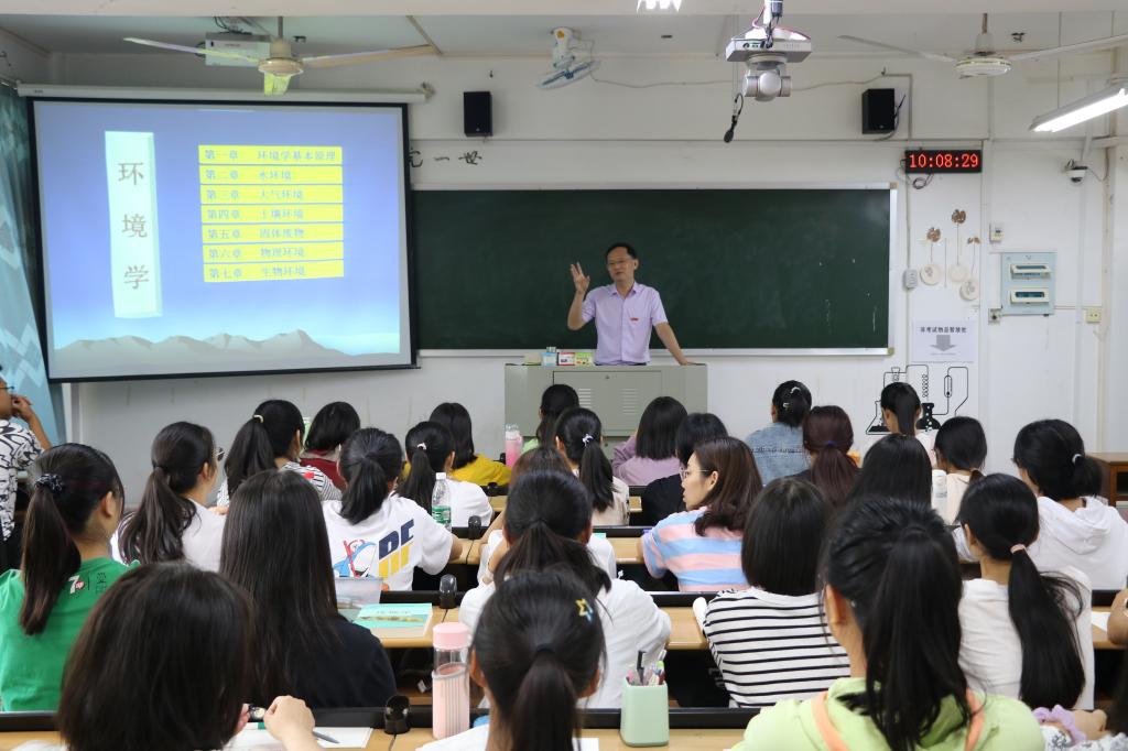 课堂上,李顺兴带头落实课程思政建设要求,充分挖掘专业课程的思政元素,提升课程育人质量。李顺兴深入浅出地为同学们讲解了《环境学》的基本理论和概念,介绍了环境多样性的分类和实例。在介绍环境学专业学科背景时,李顺兴说,环境学是研究人类与环境关系的学科,环境学积极探索符合生态文明要求的发展模式和机制,推进生态文明领域科学研究和技术攻关,在生态文明建设中发挥了积极的作用。