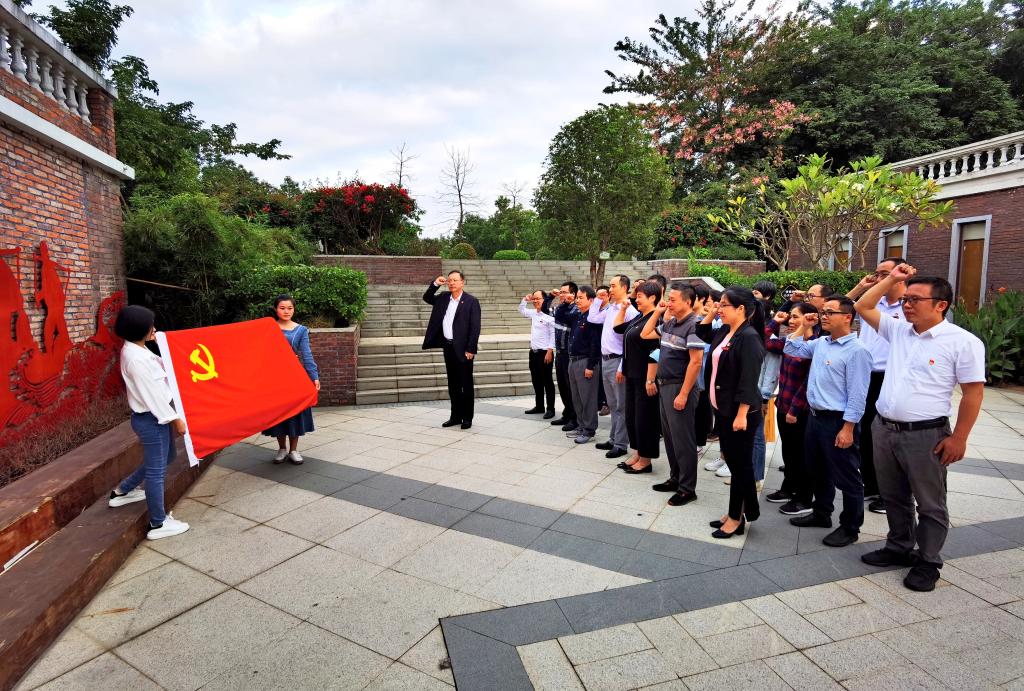 研讨会结束后,校党委常委、副校长张龙海陪同两支部党员共赴中共福建临时省委旧址、龙江颂纪念馆开展实地考察,并重温入党誓词。