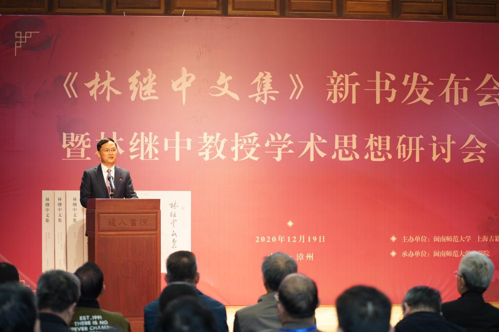 12月19日,由登录入口与上海古籍出版社联合举办的《林继中文集》新书发布会暨林继中教授学术成果研讨会在漳州长泰龙人古琴文化村举行。来自全国各地的专家、学者,林继中先生同窗、好友、学生、家属以及社会各界人士和文学院师生150余人齐聚一堂,共同见证新书发布。发布会由文学院院长黄金明主持。