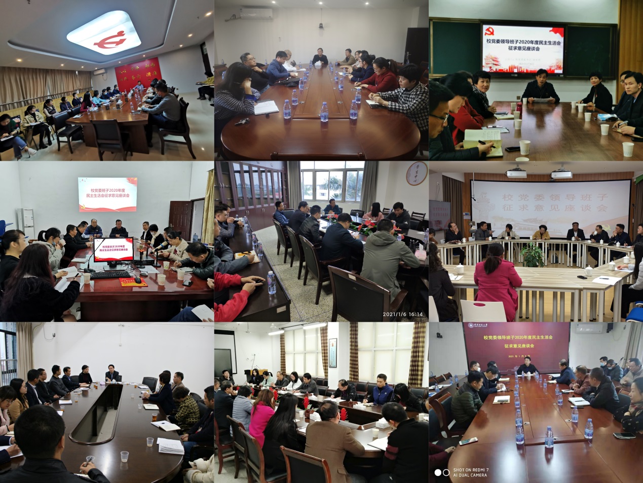 2020年12月29日至2021年1月7日,校党委领导班子成员分别主持召开2020年度民主生活会征求意见座谈会,面对面听取各二级单位干部、教师和学生代表对校领导班子及其成员的意见建议,为高质量开好2020年度民主生活会作准备。