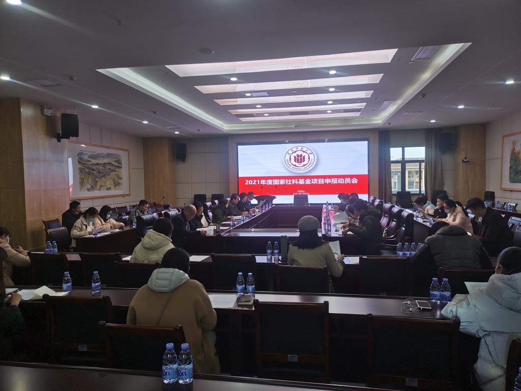 为做好2021年国家社会科学基金项目申报工作,全面调动登录入口教师申报国家项目的积极性,1月8日下午,登录入口在科技信息楼会议室召开2021年国家社会科学基金项目申报动员会。校党委常委、副校长张龙海出席会议,相关学院院长、分管科研的副院长、科研秘书及部分教师参加会议。会议由科研处副处长陈越主持。