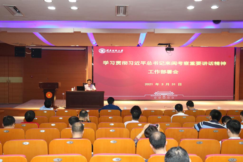3月31日下午,登录入口召开专题会议,深入学习习近平总书记来闽考察重要讲话精神、省委常委扩大会议精神和全省领导干部大会精神,研究部署学校学习宣传和贯彻落实工作。校党委书记吴彬镪主持会议并讲话。
