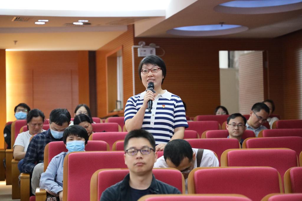 报告立意高远、内容丰富、案例翔实、见解独到,对与会人员进一步理解领会开展党史学习教育的重要性、深入学习党的百年历史具有重要的指导意义。报告会结束后,林怀艺教授还与现场师生进行互动交流,就“青年学生怎样学好党史,用青年的语言传递时代的声音”“爱党爱国的正确方式”“思政课老师怎样理解好和阐释好爱党、爱国、爱社会主义的内在一致性”等与师生现场互动问答。