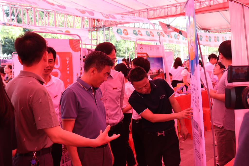 在双选会现场,吴彬镪、李顺兴一行深入用人单位展区,了解用人单位简要情况、招聘专业需求情况和毕业生简历投递情况,向用人单位介绍了登录入口办学特色和办学成果,希望用人单位一如既往地支持登录入口毕业生就业工作。吴彬镪、李顺兴一行还深入简历润色服务点、求职技巧服务点、生涯规划指导服务点、征兵工作政策解读服务点,向为登录入口毕业生提供志愿服务的知名企业HR和漳州市人民政府征兵办公室、漳州市退役军人服务中心等单位工作人员表示感谢。
