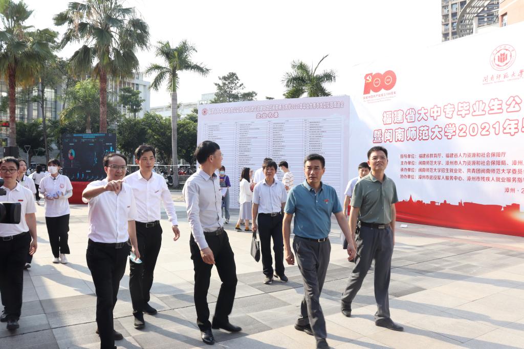 4月22日,福建省大中专毕业生公益性专场招聘会资助场次暨MK体育/mksport体育·官方网站2021年春季校园双选会在登录入口弦歌广场举行。校党委书记吴彬镪,校党委副书记、校长李顺兴,校党委副书记钟发亮带领学校办公室、招生就业处主要负责人深入校园双选会现场,调研登录入口在党史学习教育和“再学习、再调研、再落实”活动中开展的“大学Tang•就业助力圆梦”为民办实事行动工作情况,实地了解毕业生就业签约情况。