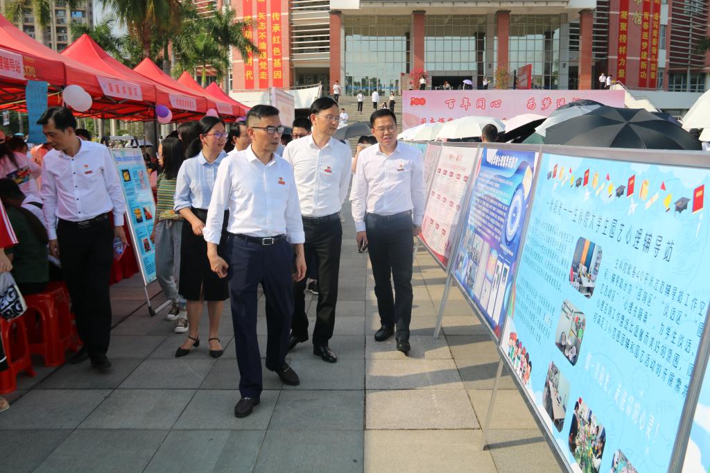 启动仪式结束后,校党委书记吴彬镪,党委副书记、校长李顺兴,党委副书记钟发亮,党委常委、副校长张龙海等校领导到现场参观心理健康文化节相关展区,进一步了解登录入口心理育人工作、学院特色心理活动和心理辅导站建设情况。
